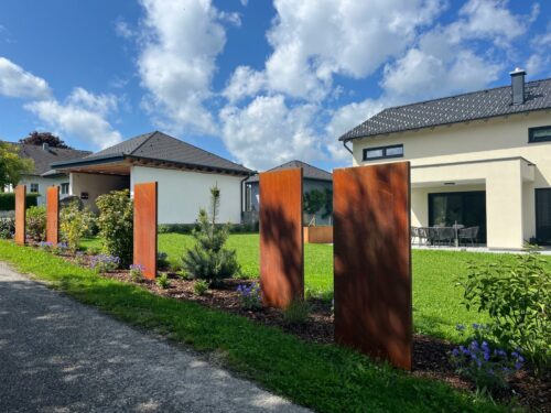 Unsere maßgefertigten Gabionen sind sowohl dekorativ als auch funktional – als Zaunelemente, Sichtschutz oder kreative Gartenmauer. Gefüllt mit Natursteinen sind sie ein langlebiges Gestaltungselement.